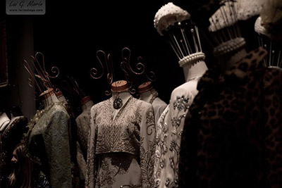 Todos pudieron ver en exclusiva esta exposición, que estará disponible al público a partir del 8 de marzo, formada por aproximadamente sesenta vestidos que estarán de forma permanente en el Museo bajo el nombre “De Mariano Fortuny a John Galliano”. Modelos que muestran la evolución de la moda a lo largo del siglo XX y presentados en cinco temas bajo una atmósfera de teatro con sofás, muebles, imágenes y complementos. También se pudo contemplar un original video inspirado en Franck Sorbier que fue proyectado sobre uno de los vestidos.