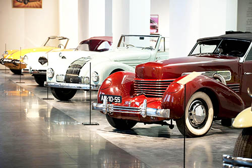En uno de los edificios más emblemáticos de Málaga, antigua Fábrica de Tabacos que data de 1923, recientemente rehabilitada se ubica el Museo Automovilístico de Málaga. Un espacio que acoge una colección única en el mundo: 95 exclusivos vehículos restaurados al más alto nivel. Desde el Winner de 1898 hasta el prototipo de aire comprimido de 2011. Jaguar, Cadillac, Rolls Royce, Bentley, Ferrari, Porsche, Mercedes y curiosos vehículos como el coche-avión y el exclusivo modelo americano Pierce Arrow de 1934 customizado por un amante del golf. En la “Galería de Motores” encontrará doce motores convertidos en obras de arte por artistas locales e internacionales, piezas genuinas customizadas con diversos motivos según la época.